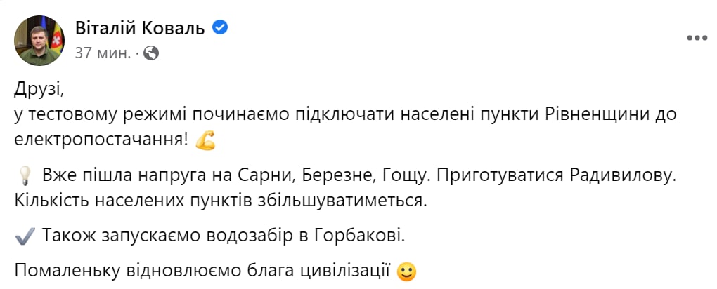 21:55 В Запорожской области уже дали свет, сообщили в Офисе президента.