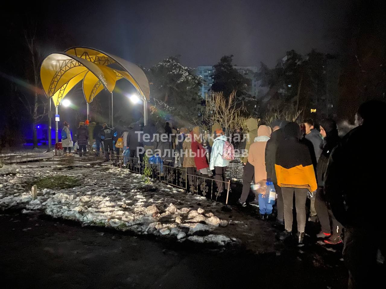 20:50 В Киеве продолжаются очереди к бюветам. Люди стоят за водой и вечером.