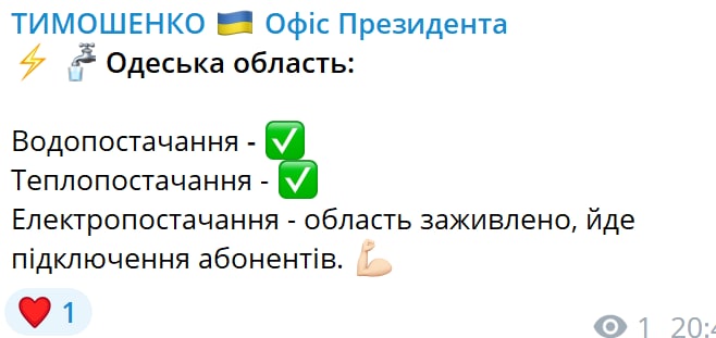 21:49 В Одесской области восстановлено водо- и теплоснабжение, сообщает Офис президента.