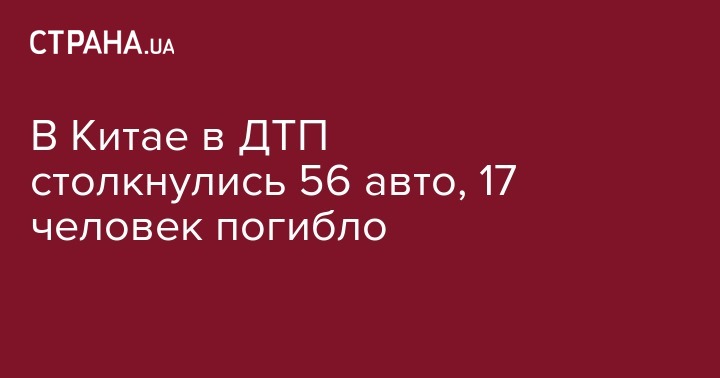 Сегодня, 22 ноября, в китайской провинции Шаньси, из-за сложных погодных условий, произошло масштабное ДТП, в котором столкнулись 56 автомобилей и пострадало, по меньшей мере, 54 человека. Об этом передает "Интерфакс-Украина" со ссылкой на агентство "Синьхуа".