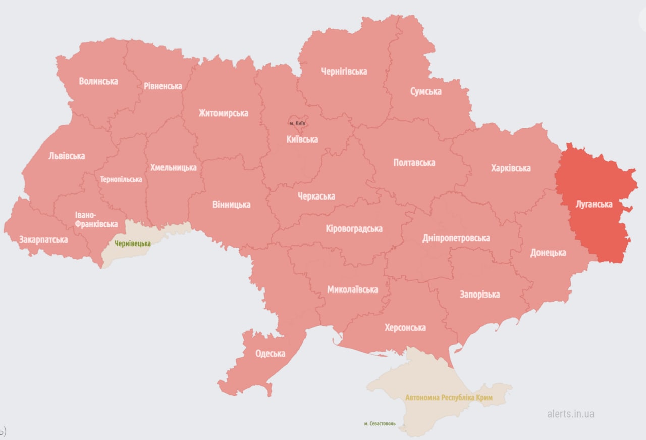 Россия наносит удары по нескольким юго-восточным областям Украины. По всей Украине, кроме Черновицкой области, объявлена воздушная тревога.