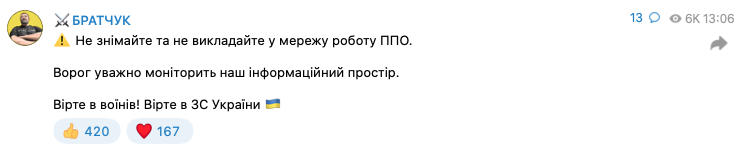 Также Ким предупреждал об угрозе ракетных ударов по Одессе, Николаеву и Херсону после обеда, поскольку в небо поднялись девять российских бомбардировщиков Ту-95.