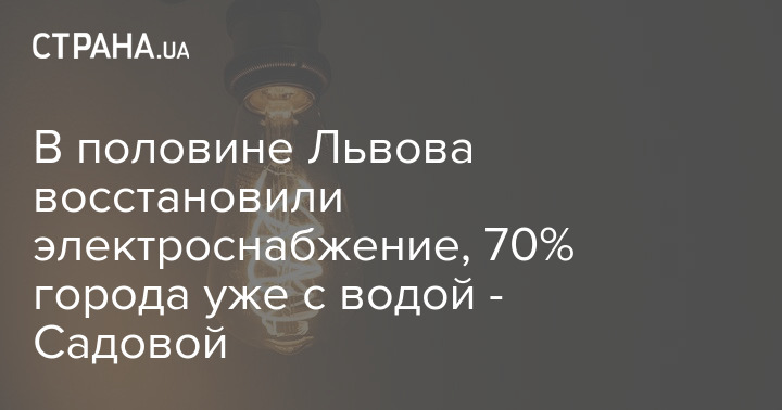 Мэр Львова Андрей Садовой сообщил, что половина города уже со светом. 70% с водой.