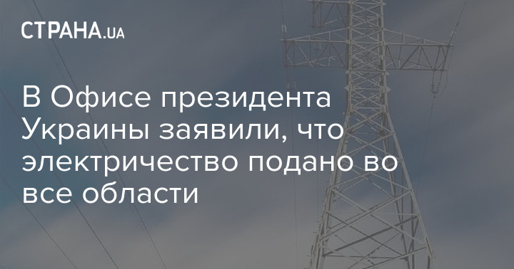 Замглавы Офиса президента Кирилл Тимошенко сообщил, что электричество подано во все области Украины.