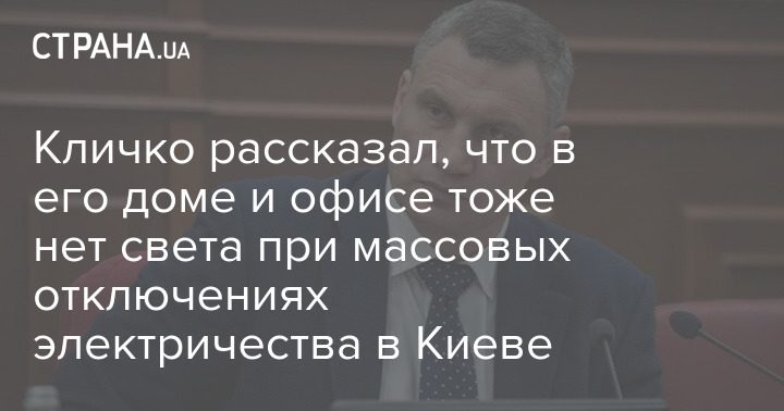 Мэр Киева Виталий Кличко заявил, что во время массовых отключений в столице у него дома и в офисе света тоже нет.