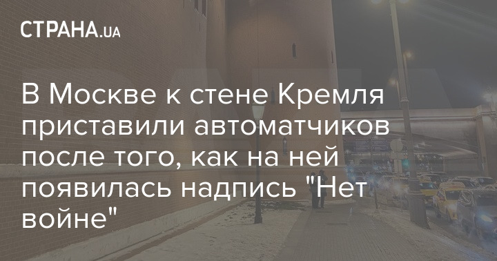 В Москве неизвестный написал на кремлевской стене "нет войне". Теперь этот отрезок стены охраняют вооруженные силовики.