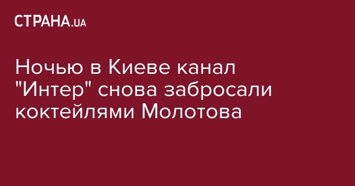 Ночью в Киеве канал "Интер" снова забросали коктейлями Молотова