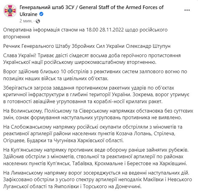 Война в Украине продолжается уже 278-й день. "Страна" следит за новостями 28 ноября в своем онлайне .