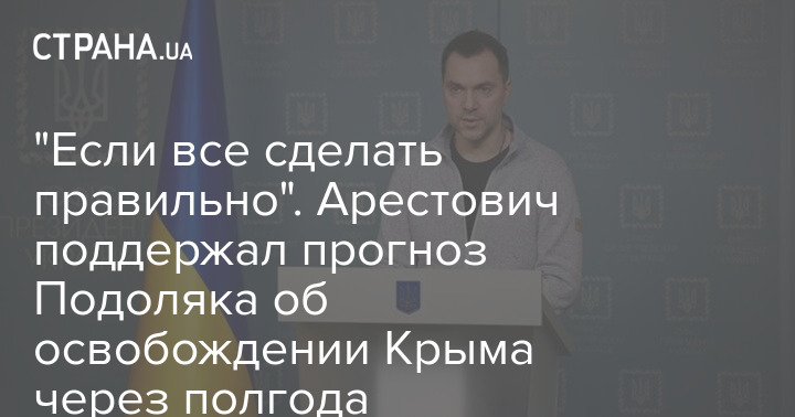 Советник Офиса президента Алексей Арестович поддержал прогноз Михаила Подоляка относительно возвращения Крыма Украине через 6 месяцев.