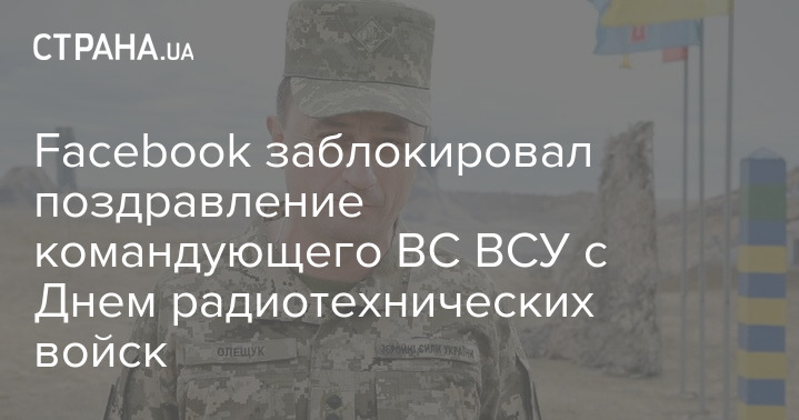 Американская соцсеть Facebook заблокировала сообщение командующего Воздушными силами ВСУ Николая Олещука с поздравлением ко Дню радиотехнических войск.