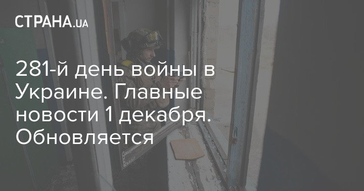 В четверг, 1 декабря, в Украине идет уже 281-й день войны с РФ.
