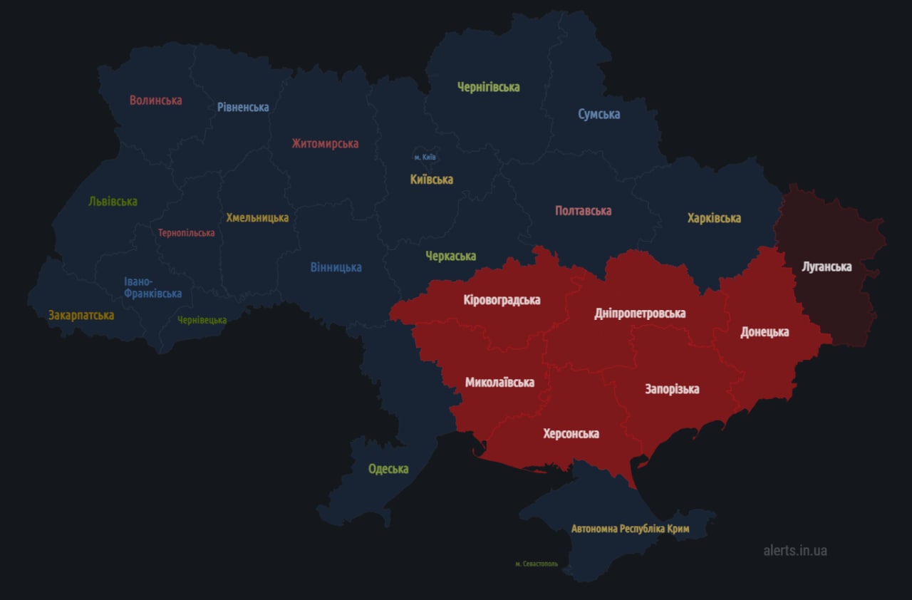 14.30 Воздушная тревога во всех областях кроме Крыма.