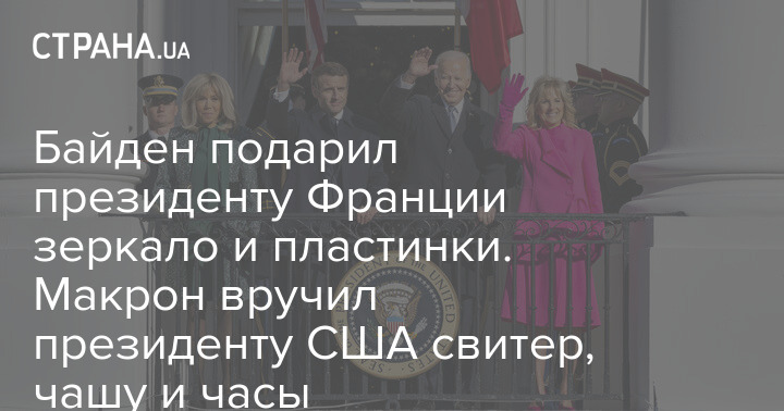 Байден подарил президенту Франции зеркало и пластинки. Макрон вручил президенту США свитер, чашу и часы
