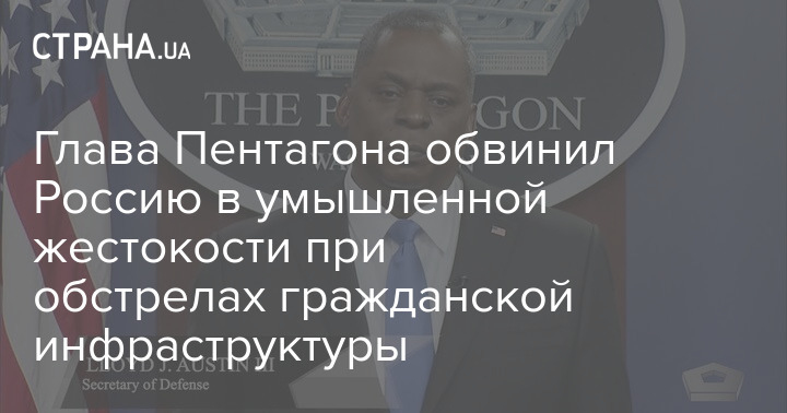 Глава Пентагона Ллойд Остин заявил, что Россия с преднамеренной жестокостью целится в мирных жителей Украины и ее гражданскую инфраструктуру.