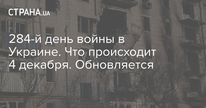 В воскресенье, 4 декабря, в Украине идет уже 284-й день войны с РФ.