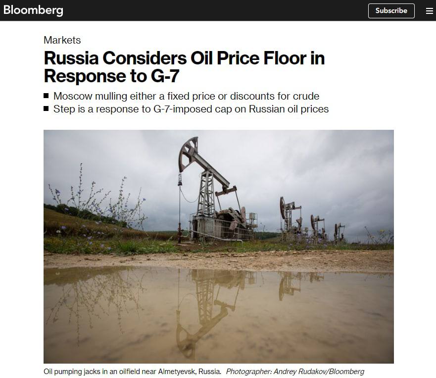 Россия рассматривает введение минимальной стоимости нефти в ответ на установленный G7 потолок цен.
