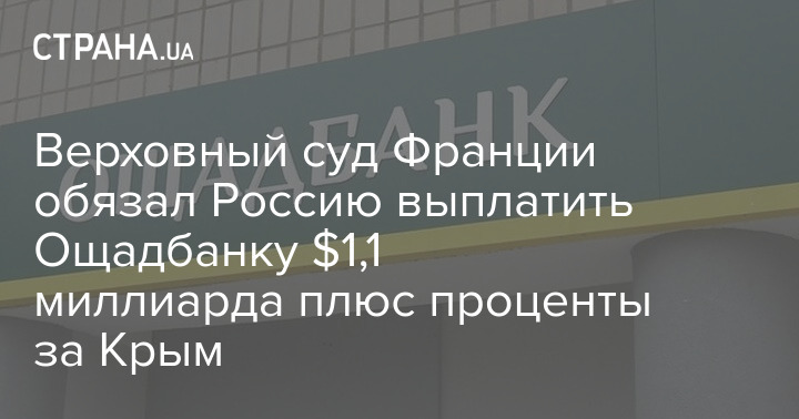 Верховный суд Франции обязал Россию выплатить Ощадбанку $1,1 миллиарда плюс проценты за Крым