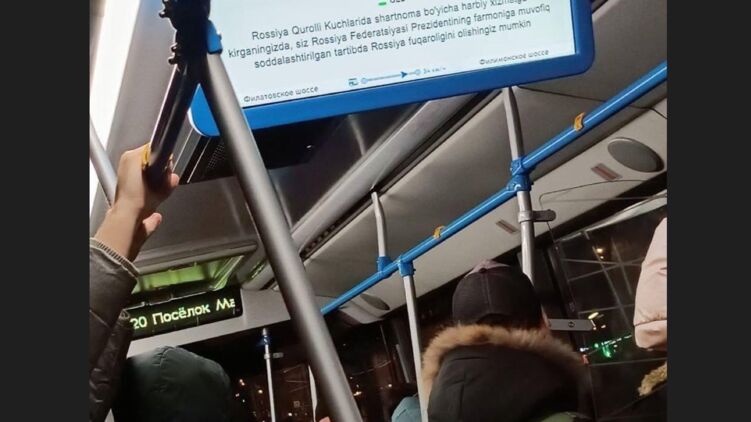 Обещают гражданство. Как в России приглашают узбеков на службу в армию объявлениями на транспорте. Фото