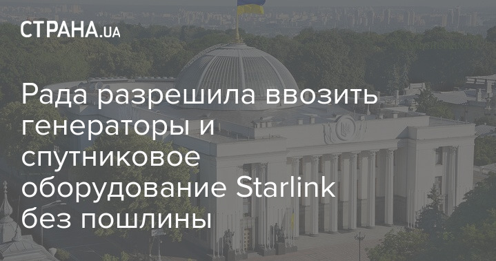 Верховная Рада поддержала во втором чтении и в целом законопроекты №8196/8197, позволяющие освободить от пошлины и налога на добавленную стоимость (НДС) терминалы Starlink, генераторы и другое оборудование.