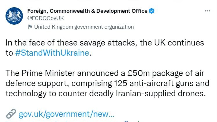 Британия передаст Украине новый пакет военной помощи на 50 млн фунтов стерлингов (около 61 810 000 млн долларов США - Ред.).