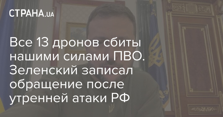 Все 13 дронов сбиты нашими силами ПВО. Зеленский записал обращение после утренней атаки РФ