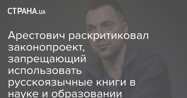 Советник Офиса президента Алексей Арестович раскритиковал законопроект, запрещающий использовать в науке и образовании книги на русском языке (в том числе переводные) и делать ссылки на них.