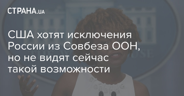 "Мы были весьма последовательны в этом вопросе. Если бы существовал способ исключить Россию из Совета Безопасности ООН, мы бы немедленно приступили к этому. К сожалению, мы не видим возможности изменить правила ООН. И поэтому мы сосредоточены на продолжении усилий по изоляции России и в международных организациях и по привлечению России к ответственности, в том числе посредством санкций и принудительных мер, о которых мы объявили сегодня, как вы видели", - ответила Жан-Пьер.
