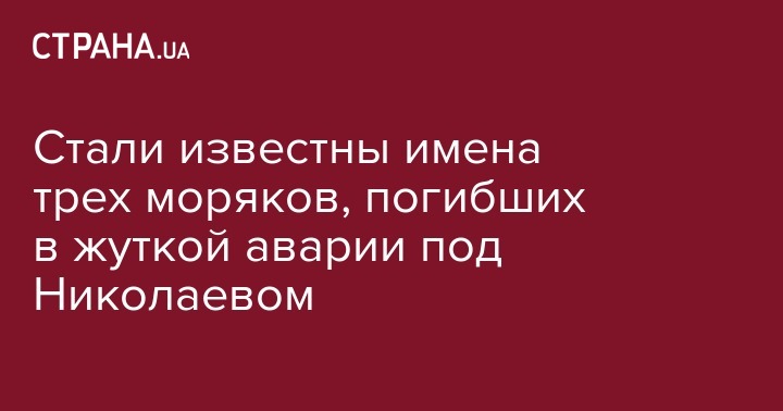 Руководство Военно-морских сил Украины (ВМС) назвало имена военных, погибших в страшном ДТП под Николаевом. Как говорится в сообщении ведомства на странице Facebook, это военнослужащие артиллерийских воинских частей украинских ВМС – старший лейтенант Вячеслав Марченков, старший лейтенант Александр Олейник, прапорщик Геннадий Адамов и матрос Евгений Кулиниченко.