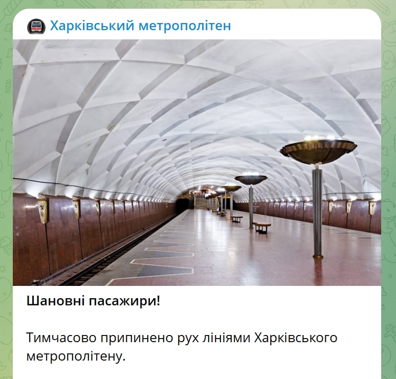 09:20 Харьковское метро возобновило работу, сообщил метрополитен в своем телеграм-канале.