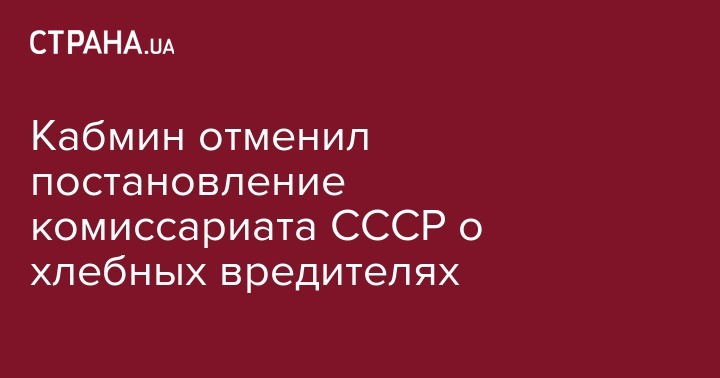 Кабмин отменил постановление комиссариата СССР о хлебных вредителях