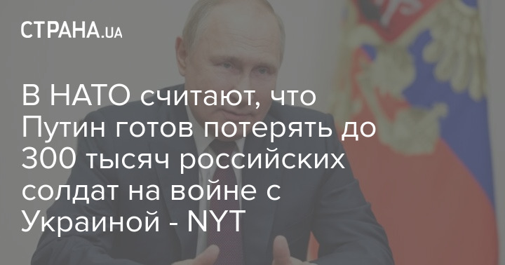 Одна из стран НАТО утверждает, что президент России Владимир Путин готов потерять до 300 тысяч российских солдат в войне против Украины.
