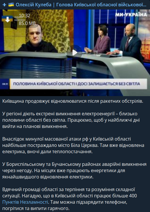 Об этом рассказал в эфире телемарафона глава Киевской областной военной администрации (ОВА) Алексей Кулеба.