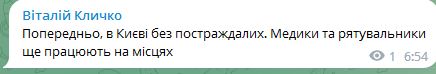 06.55 Предварительно, в Киеве обошлось без пострадавших.