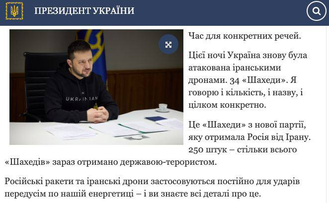 По словам президента, именно беспилотники из этой партии сегодня ночью атаковали Украину, когда было выпущено 34 "Шахида".