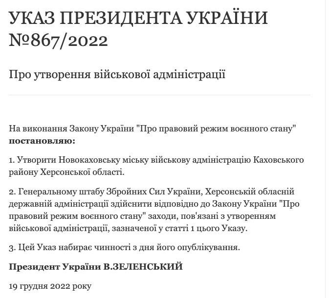 10:11 Зеленский подписал указ о создании новой городской военной администрации в Херсонской области - Новокаховской. Главой назначен председатель Каховского райсовета Валерий Брусенский.