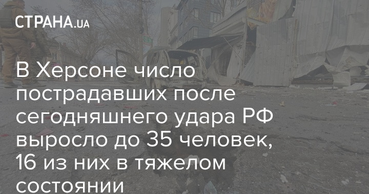 В Херсоне после сегодняшнего обстрела РФ количество раненых людей выросло до 35 человек, 16 из них находятся в тяжелом состоянии. Также 5 человек погибли.