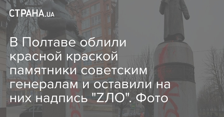 В Полтаве облили красной краской памятники советским генералам и оставили на них надпись "ZЛО". Фото