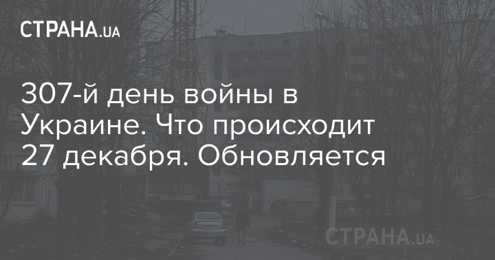 Во вторник, 27 декабря, в Украине идет уже 307-й день войны с РФ.