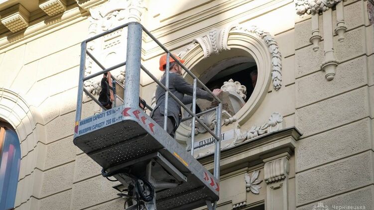 В Черновцах с фасада здания областного музыкально-драматического театра имени Кобылянской сняли гипсовый бюст Пушкина.