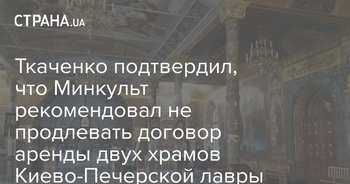 Министр культуры и информационной политики Александр Ткаченко подтвердил, что Минкульт рекомендовал Музею Киево-Печерской Лавры не продлевать с УПЦ договор аренды двух крупнейших храмов Лавры.