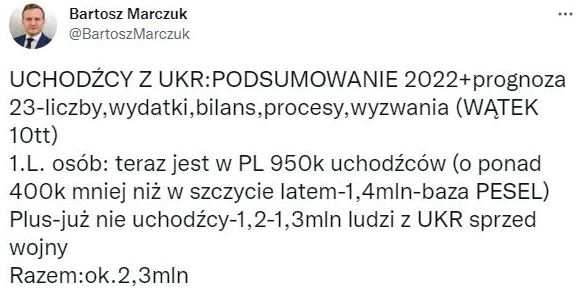 По его данным, всего в Польше проживают около 2,3 миллиона украинцев. Это 950 тысяч беженцев и почти 1,4 млн украинцев, которые находились в Польше до полномасштабного вторжения РФ.