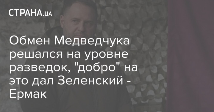 "Обмен Медведчука решался на уровне разведок. Единственный канал общения относительно обменов происходит на уровне разведок", - сообщил Ермак.