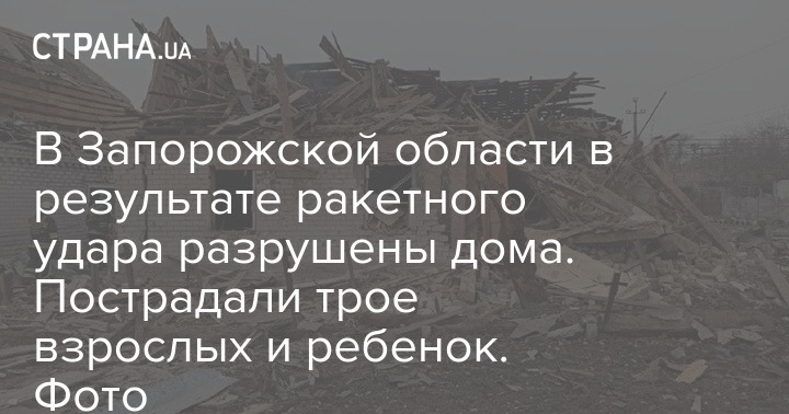 В Запорожской области в результате ракетного удара разрушены дома. Пострадали трое взрослых и ребенок. Фото