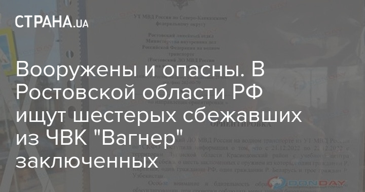 В Ростовской области ищут шестерых сбежавших из ЧВК "Вагнер" заключенных. Они были завербованы для участия в войне в Украине и сбежали из учебного центра ЧВК в Краснодарском районе Луганской области ориентировочно 21-22 декабря.