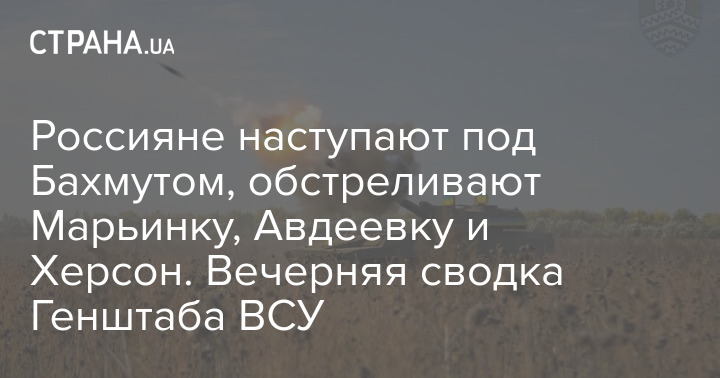 Россияне наступают под Бахмутом, обстреливают Марьинку, Авдеевку и Херсон. Вечерняя сводка Генштаба ВСУ