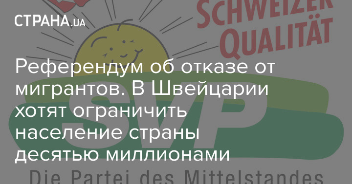 Швейцарская народная партия (SVP), критикующая массовую иммиграцию, собирается провести референдум о пересмотре международных договоров, в которых участвует страна, или даже к полному отказу от них, если население Швейцарии достигнет 10 миллионов человек.