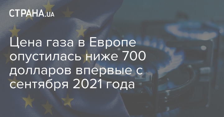 Цена газа в Европе опустилась ниже 700 долларов за 1000 кубометров впервые с сентября 2021 года.