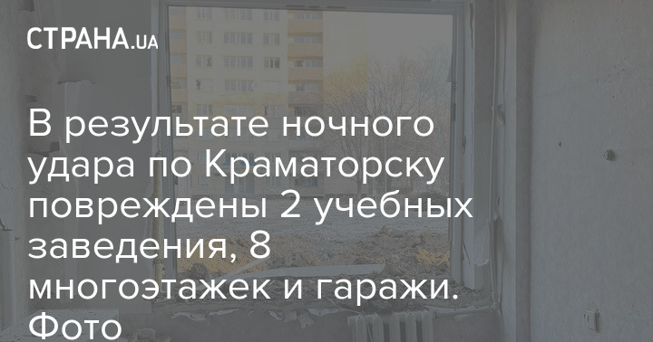 В результате ночного удара по Краматорску повреждены 2 учебных заведения, 8 многоэтажек и гаражи. Фото