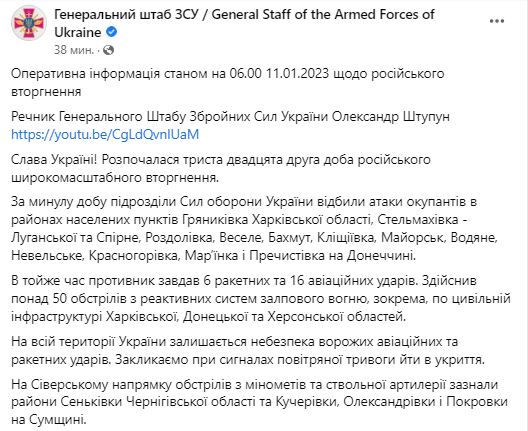 В среду, 11 января, в Украине идет 322-й день войны с РФ.