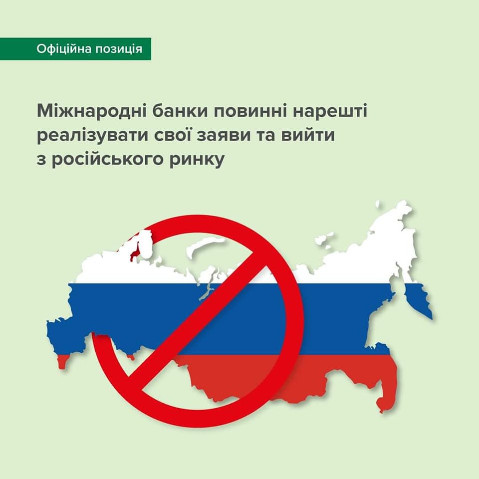 "Публично еще раз обращаемся к руководству международных банковских групп – оставаясь в России вы избрали поддержку агрессора и его военных преступлений. Кроме моральных аспектов такая политика противоречит официальной позиции правительств стран демократического мира и широкомасштабной поддержке украинского народа населением этих стран", - говорится в сообщении.